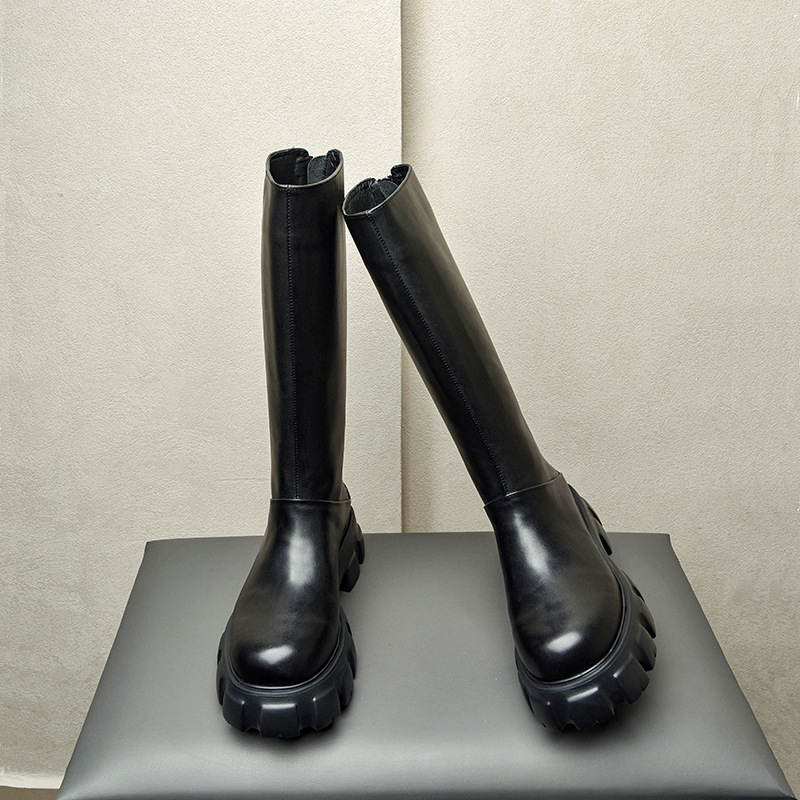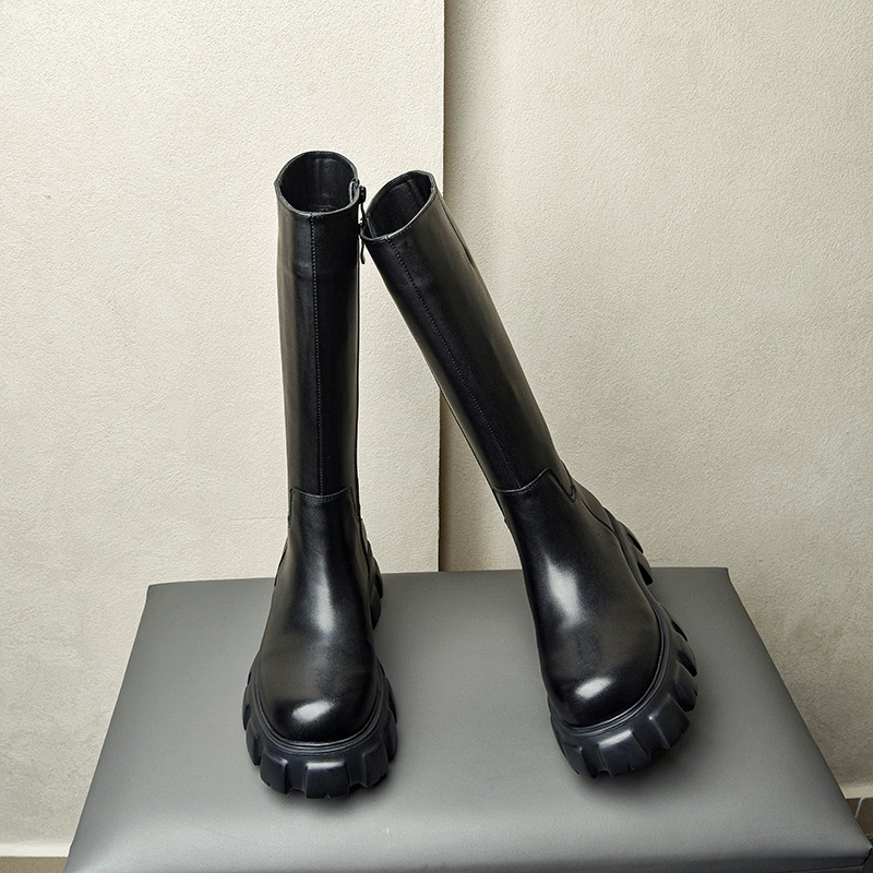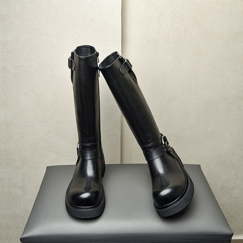 男性用の高筒ブーツのレトロな方頭の厚い底が高くなります。
