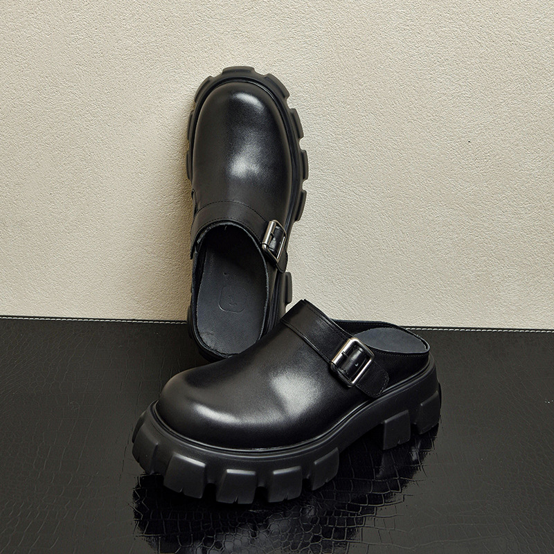 茶色の徳比包頭スリッパ男の厚い底が高くなりました。本革の通気性が高くなりました。