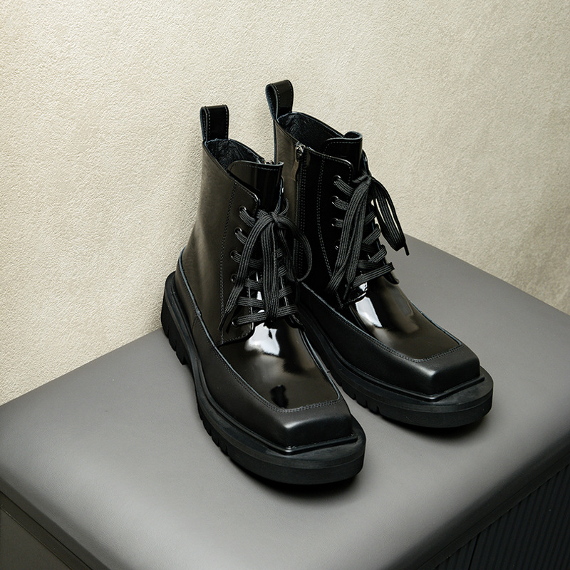 代件英倫真皮漆皮角頭厚い底マーティンブーツ男2023新型カジュアル黒ベルベットブーツ
