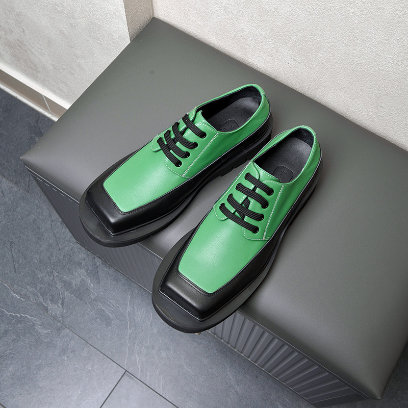 新しい男性の四角い頭の厚い底の靴の本革のビスケットの靴の黒い緑の色のカジュアルな靴の広州の靴を代行します。