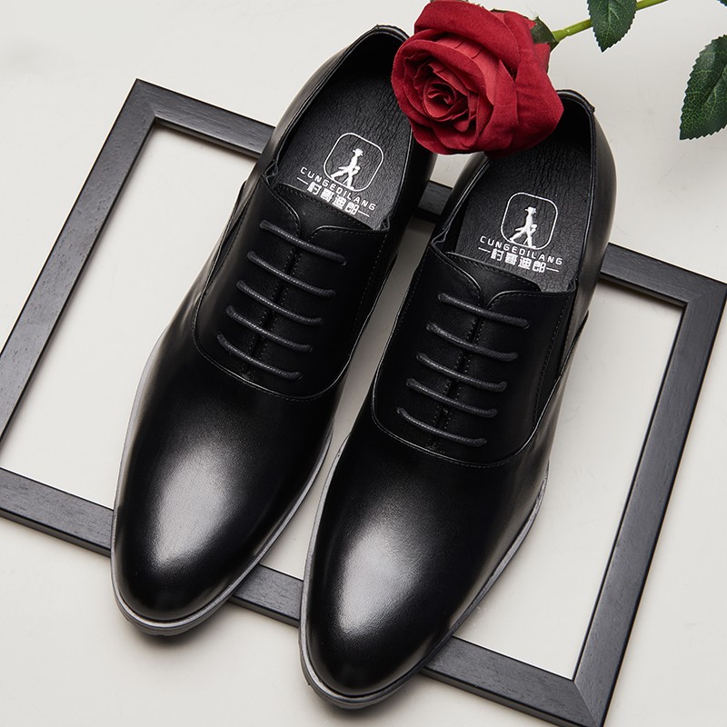 大きい靴の男性のファッションのカジュアルな厚い底の春と秋の新型の英倫の小さい靴の男性の丸い頭は高くなります牛革の男性の靴