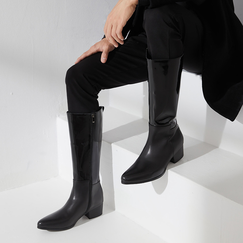 冬の新型男性の本革の先の高いブーツの潮流のハイヒールの長いブーツの広州の男性の靴を代行します。