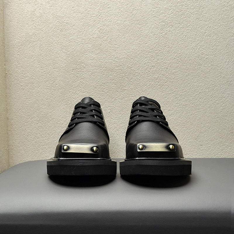 2023年の新型松餅の厚い底の徳比靴の男性の角の頭の金属は高級感のカジュアルな靴の潮を掛けます。