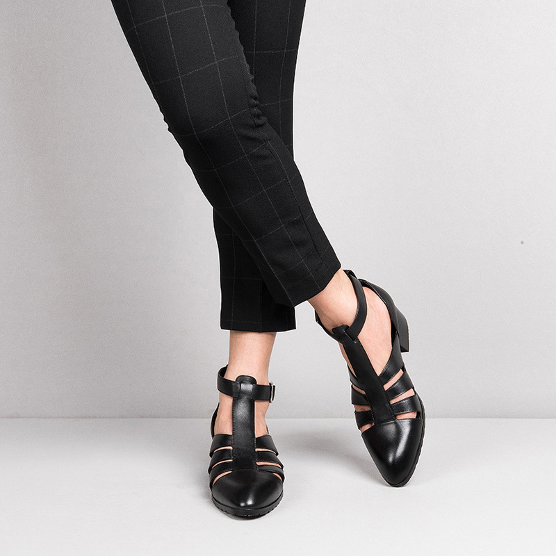 包頭半スリッパの男性はハイヒールのミュラー靴の本革を履いています。