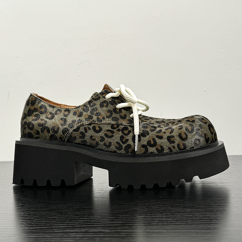 ヒョウ柄の靴の男性の厚い底が6cm高くなりました。