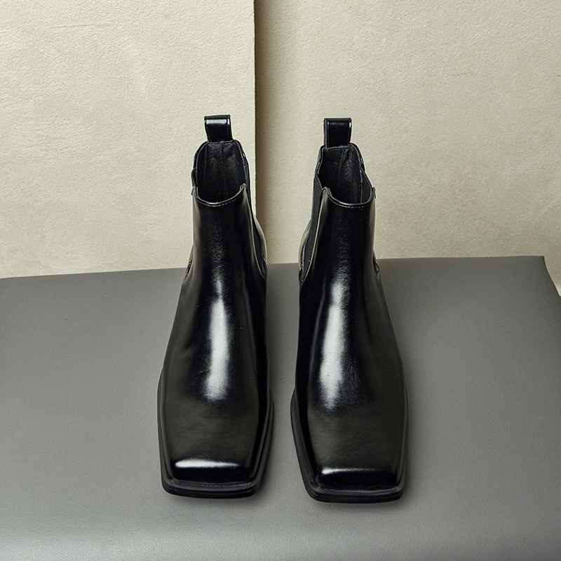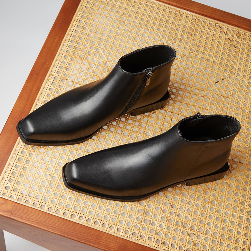 2022新型男性の四角いブーツの頭の層の牛革のブーツの低いヒールの男の靴の冬のベルベットのチェルシーの靴の男の靴