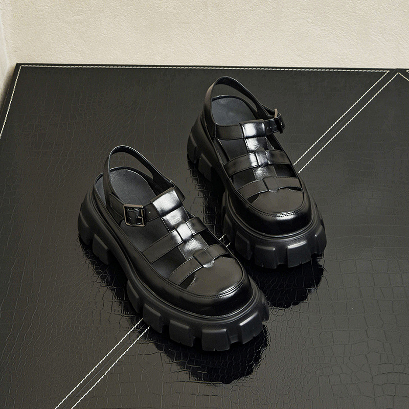ハイエンドの個性の厚い底のローマのサンダルの男性の2024夏の新型のファッションの包頭は透かしを彫って本革を高くします。