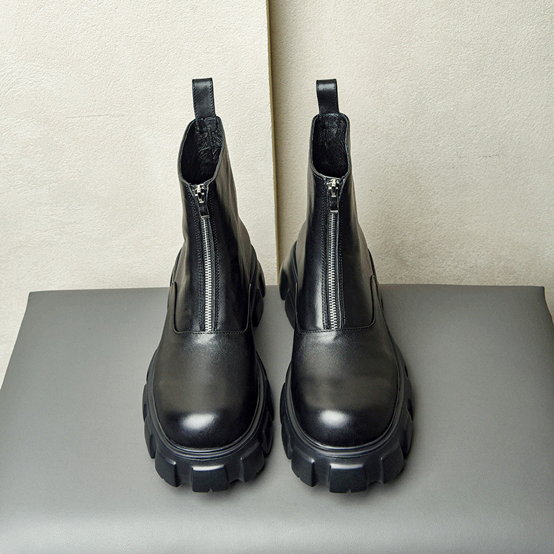 代件英倫真皮ファスナー馬丁靴男松餅秋冬黒軟皮ショートブーツが高くなった