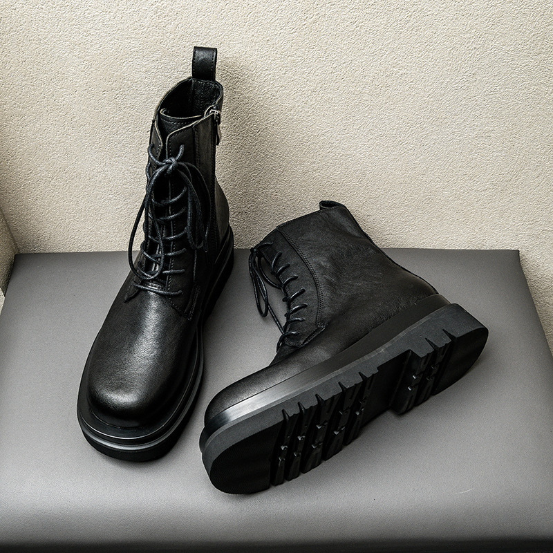 代装植なめ手掴み紋頭層牛革マーティンブーツ男は冬に厚い底が6cm高くなった男ブーツ