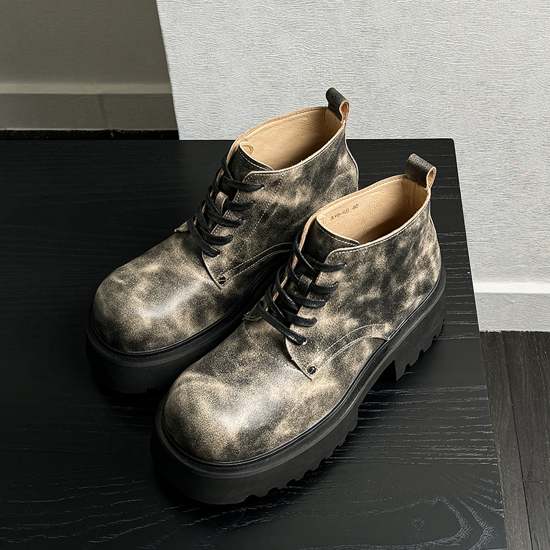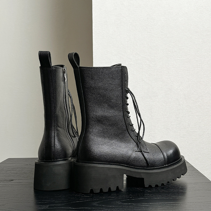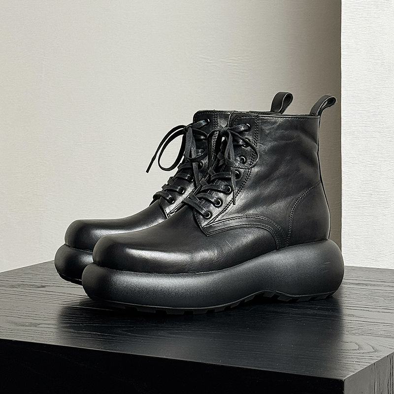 代装水洗い牛革マーティンブーツ男の厚い底が6cm高くなった黒のブーツの高級感ブーツ