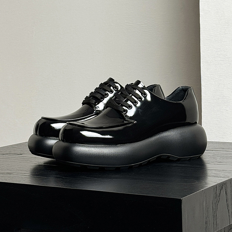 男性用の全頭層牛革が6cmアップした方頭靴の通気性防臭カジュアル底ダービー靴