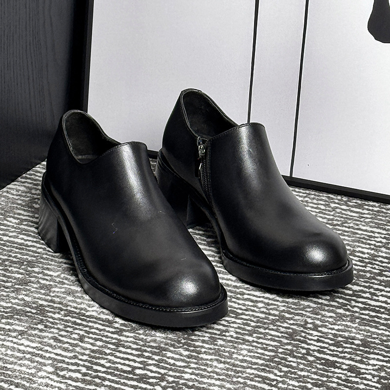 新しい厚い底のマーティンの靴の男性は6cmの内外の全皮の黒色の丸い頭の側のファスナーのショートブーツを増加します。
