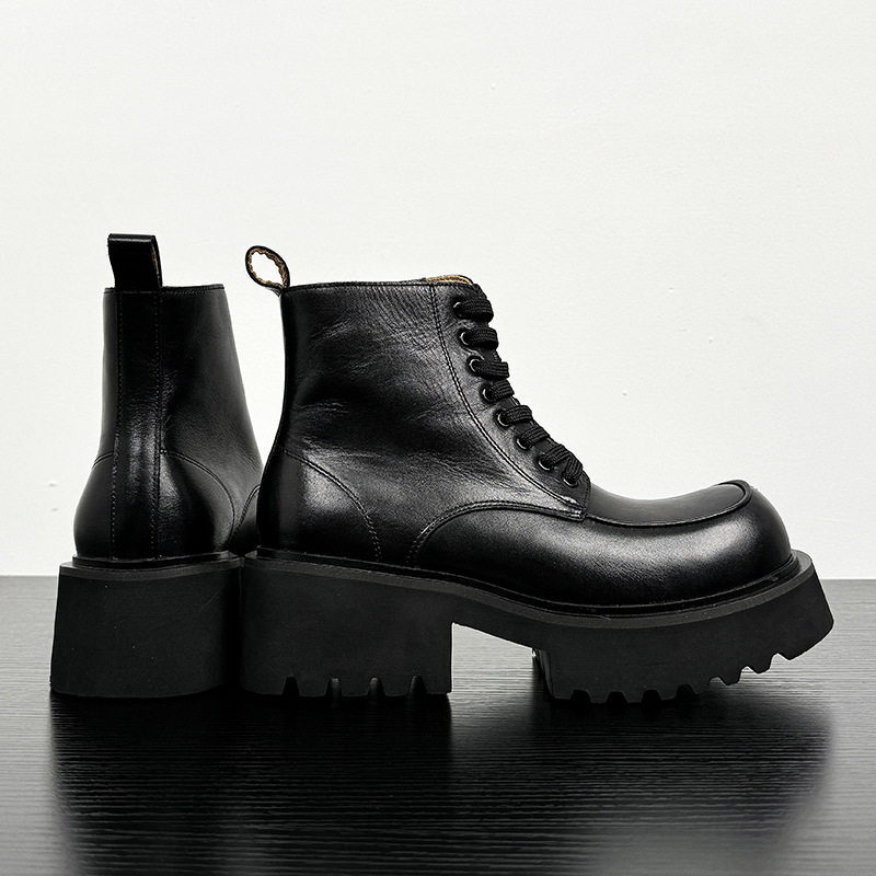 本革のマーティンブーツの男性は6cmの松餅の厚い底の頭の層の牛革とベルベットの男性靴の工装ブーツを増加します。