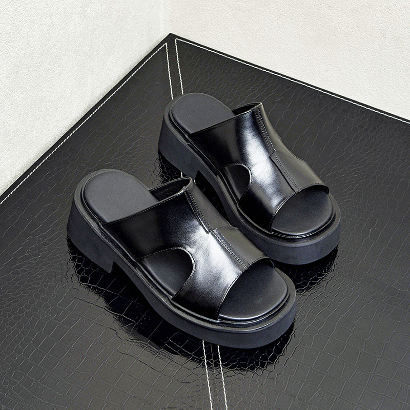 2024夏の新型本革スリッパ男性カジュアルに合わせて厚い底が高くなります。