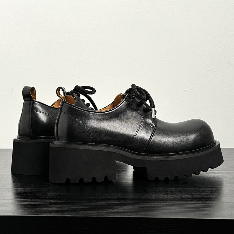 高級感が高くなったダービー靴の男性の軽量性の厚い底の通勤ストラップの丸首の全牛革カジュアル靴