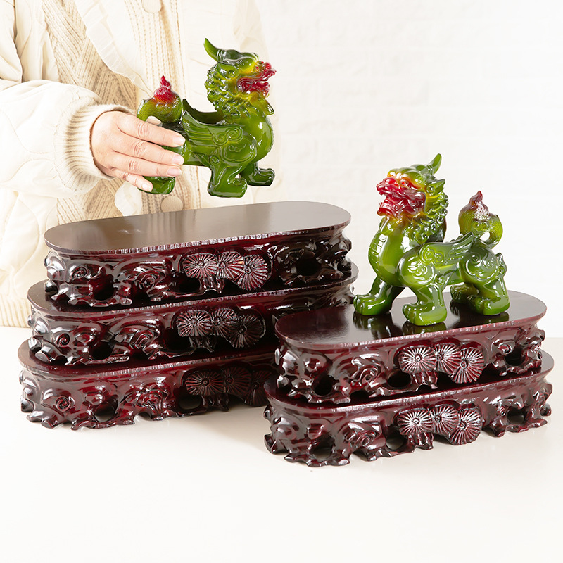 麒麟置物玉奇石台実木整木造客間盆栽花鉢植え木トレーは溝を掘ることができます。