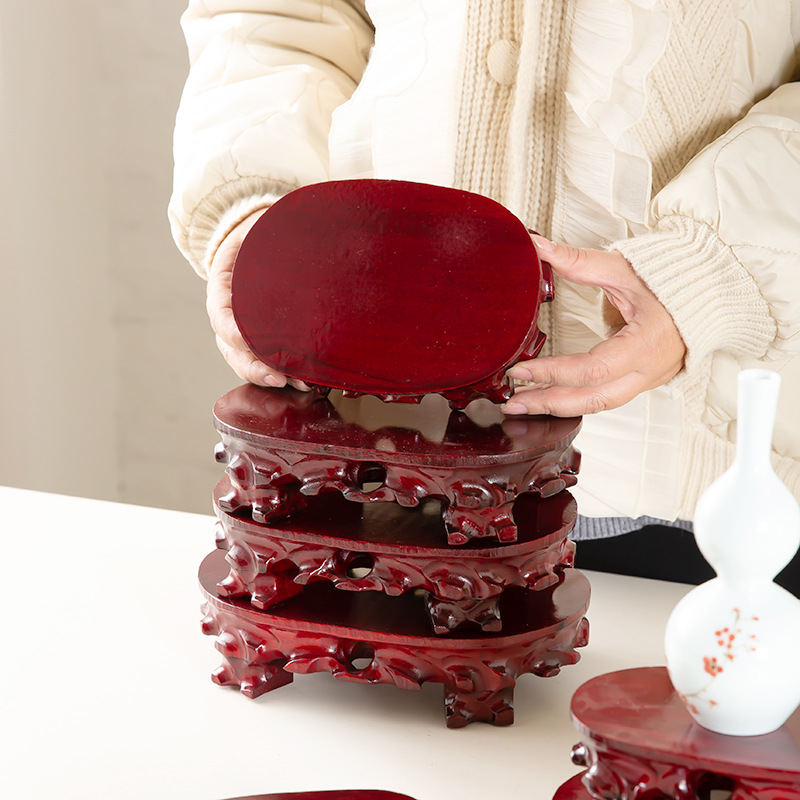 実木楕円形置物台座植木鉢木製花瓶底ブラケット工芸品奇石ティーポット仏像多肉マット