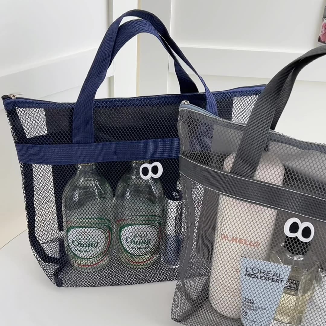 大きな目が特徴のメッシュビーチバッグ、韓国風メッシュ洗面用具・化粧品バッグ、携帯用大容量アウトドア水遊び収納バッグ