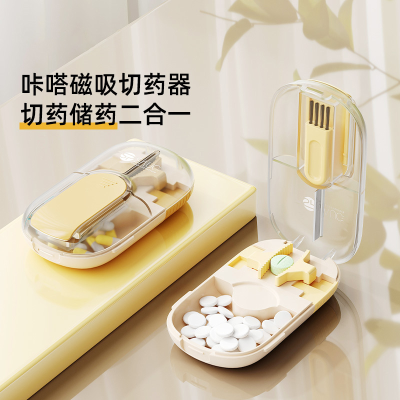 日本カチカチ磁気吸引薬片切り器分薬携帯薬収納分切薬箱器一分二切薬神器