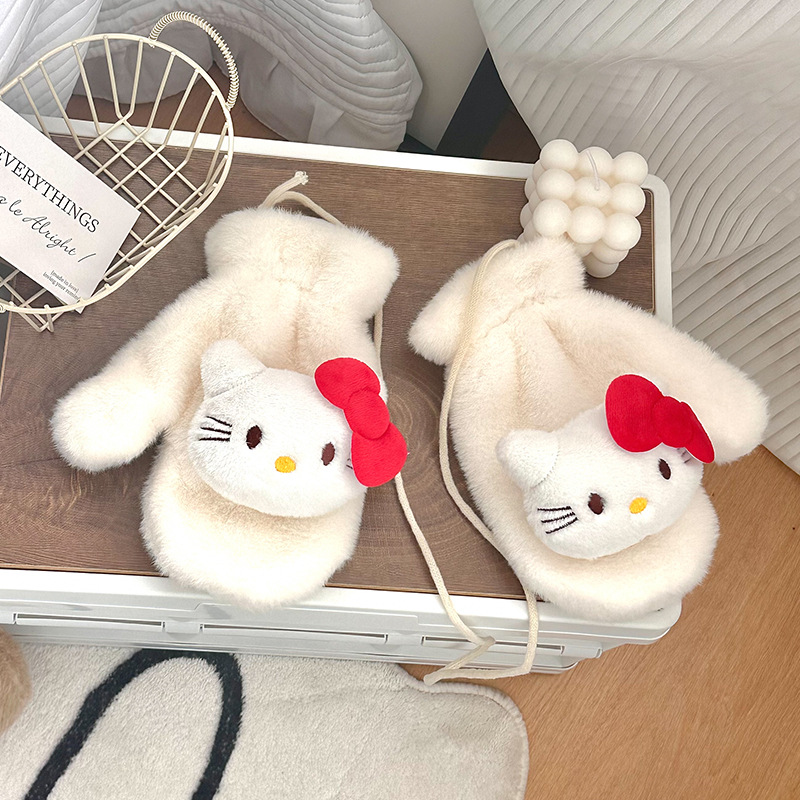 保温手袋女性秋冬タッチパネル防寒毛糸ニットとベルベット自転車乗り五本指かわいいアニメ代発