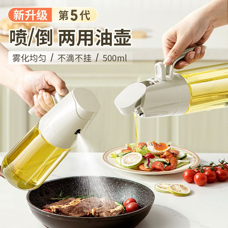 オイルスプレーボトルオイルポット家庭用食品グレードのキッチンスプレーと注ぐ両用漏れ防止増粘ガラスオイルタンクスプレー油スプレーボトル