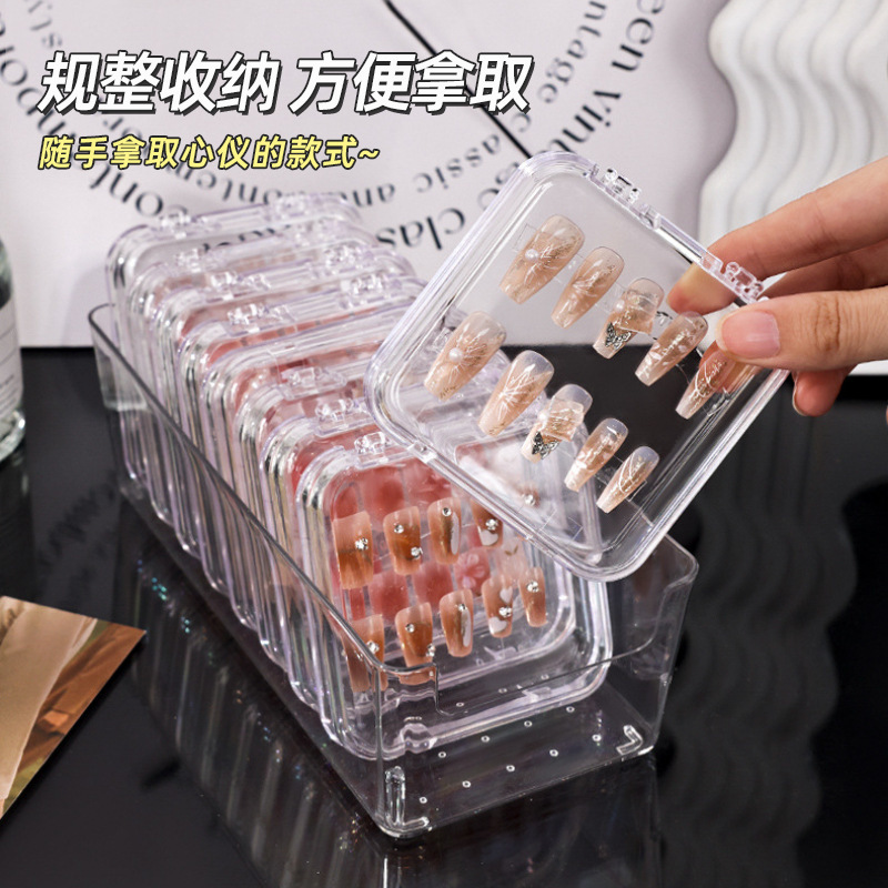 甲を着用して、収納ケースの透明なアクリルのネイルアートを収納して、防塵密封の四角形の保護ケースの透明な展示棚を密封します。