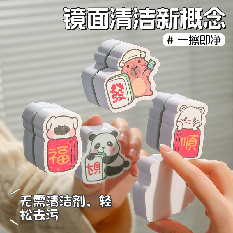 新年の萌えはスポンジをかわいがって、大きいサイズの鏡面の魔力を拭いて清潔にします。