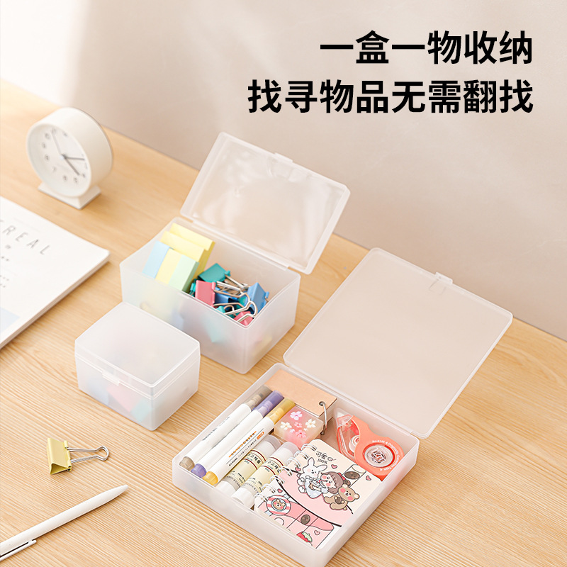 デスクトップ収納ボックスつや消し質感半透明収納ボックス学生文房具整理ボックス化粧品収納ボックス蓋付き