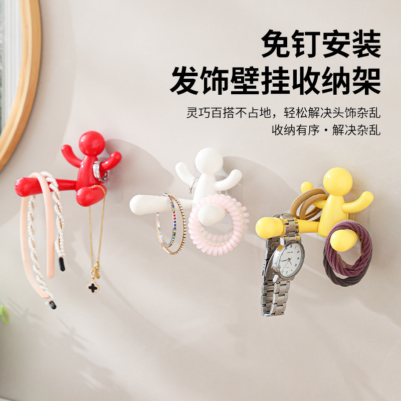 リトルマンヘアアクセサリーフックガールズヘッドバンド収納ラックバスルーム収納ラック釘不要の携帯電話ホルダーレザーリングオーガナイザー