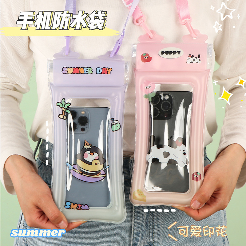 かわいいアニメの大きなストラップの携帯電話のエアバッグの防水袋は屋外でタッチパネルで泳ぐことができます。