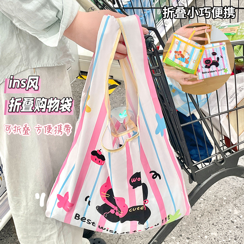 折り畳みショッピングバッグかわいい大容量圧縮バッグ軽薄手持ち肩バックアイデアエコ収納手提げ袋