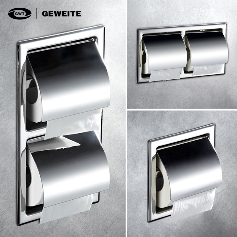 ホテルの暗いティッシュの棚の双巻きの紙の棚の304ステンレスの壁式のティッシュの箱はトイレットペーパーの棚のトイレに埋め込みます。
