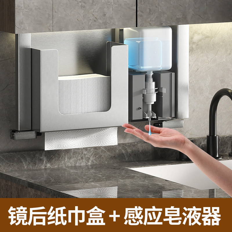 密かに手拭紙箱にステンレス鏡をはめ込んだ後、紙箱の商用鏡箱の下に隠れたティッシュペーパー棚を引き出します。