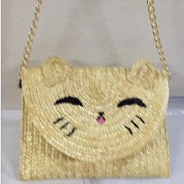 卸売り2013新型草編みバッグファッションかわいいネズミカワイイ斜めに小さな女性バッグ、猫の頭模様