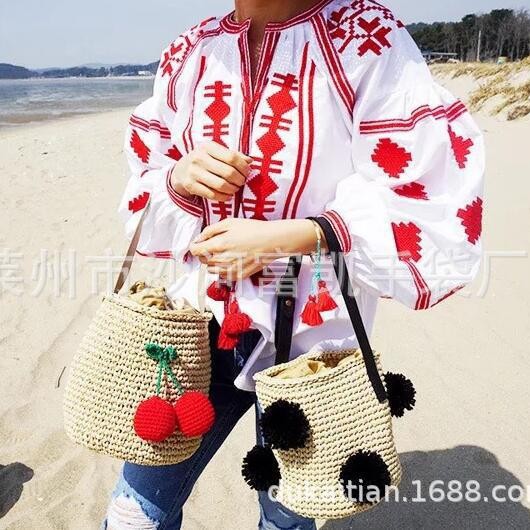 莱州草編みバッグ手作りトウモロコシ革バッグシングル肩女性バッグビーチバッグハンドバッグ女性夏バッグ