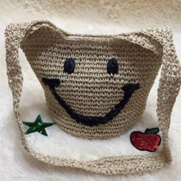 富凱鉤針笑顔包、紙ひも草編包旅行休暇ビーチバッグファッションショッピングレジャーバッグ