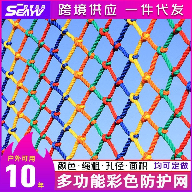 カラー防護網観光地区幼稚園防護装飾屋外囲網ナイロン登り防止網虹安全網