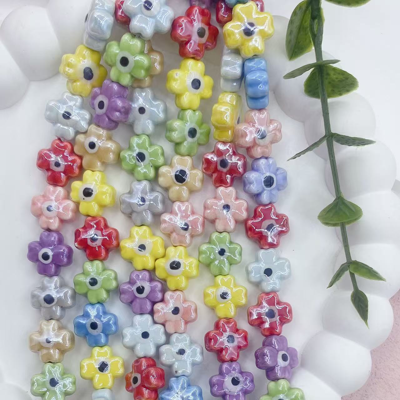 新しい陶磁器の玉の四つ葉のクローバーの目のビーズの数珠diyの手作りのブレスレットのネックレスのイヤリングのアクセサリーの部品の卸売り