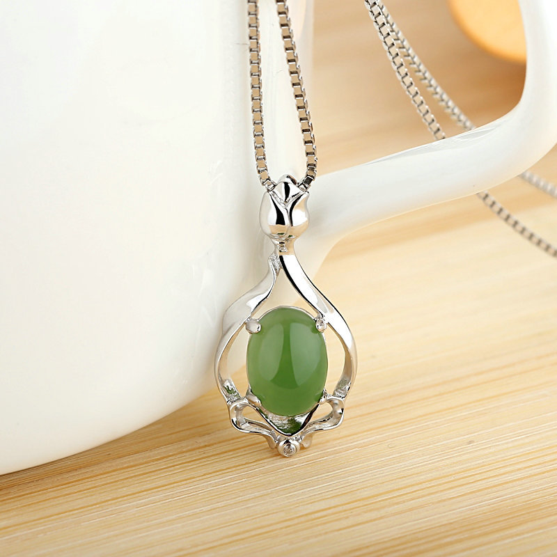 A430和田玉碧玉アクセサリー925純銀に水滴碧玉ペンダントを入れる