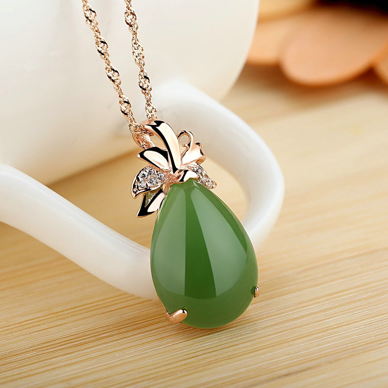 18k4dハードゴールド水滴ペンダント和田碧玉kゴールドペンダント小清新ファッション女性ネックレス卸売り
