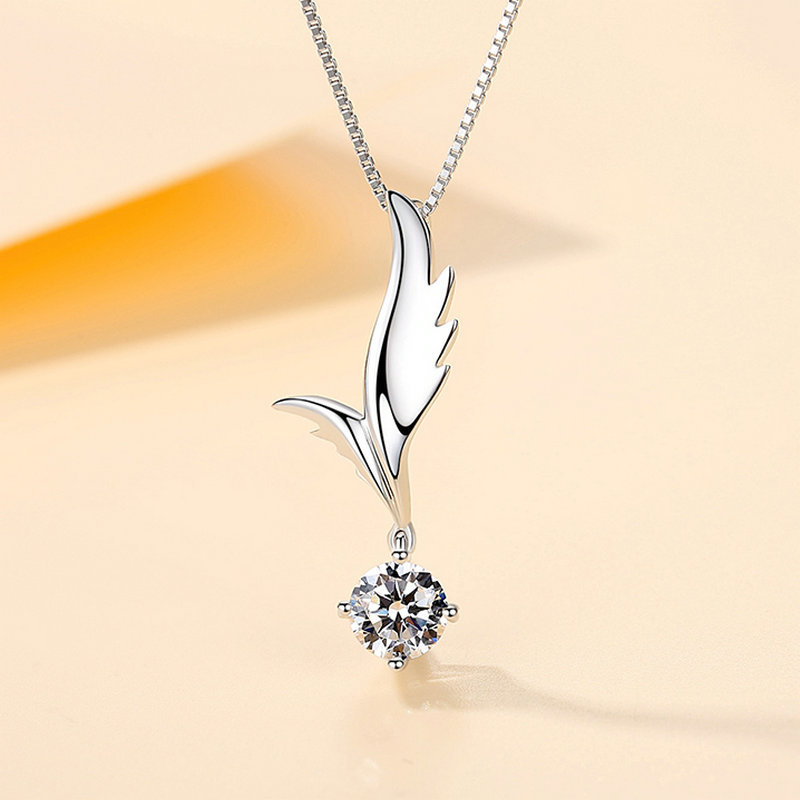 925銀天使翼純銀ネックレス女性天然水晶ペンダント莫桑石ペンダント