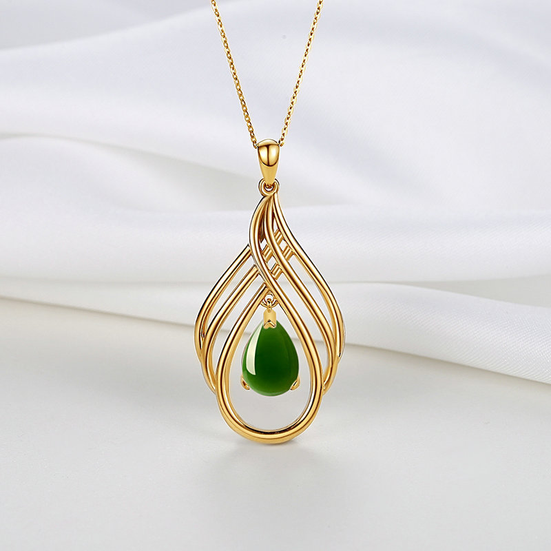 18k4dハードゴールドペンダント水滴ペンダントレディース金ペンダント卸売和田碧玉水滴ペンダント