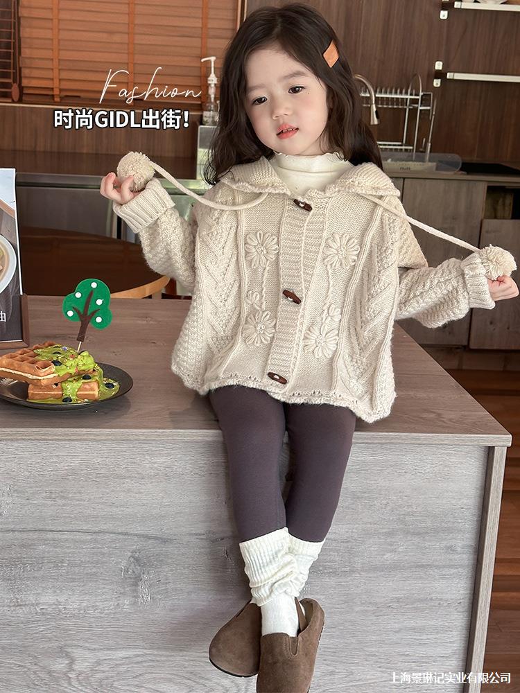 謝金毛童装児童セーター2024秋装新女の子洋気復古手作り鉤花ニットカーディガン外