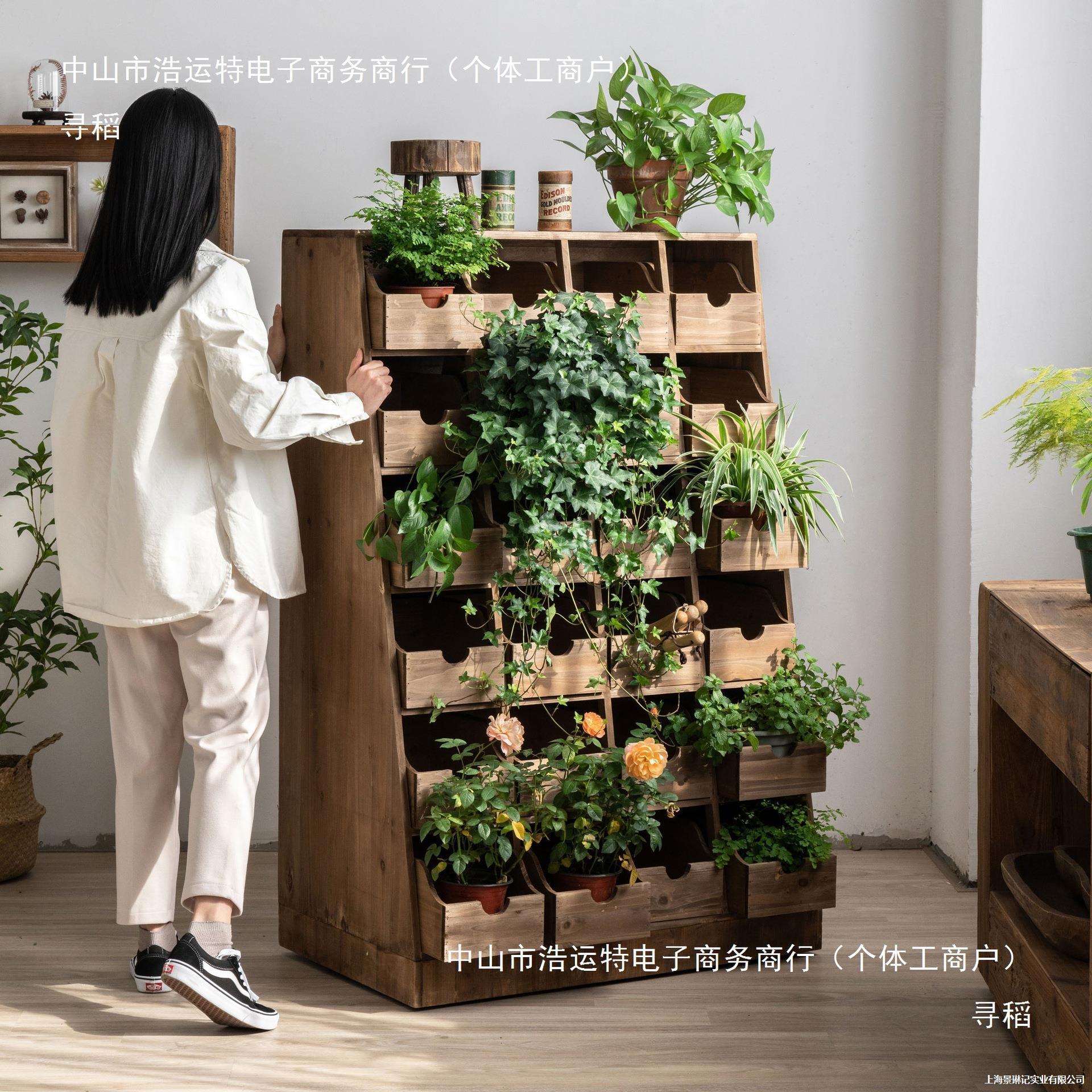 田園風ベランダ緑植戸棚多機能実木引き出し収納戸棚移動式棚