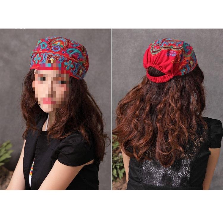 民族風髪飾り刺繍花綿布芸髪帽子付き母が白髪を隠しています。
