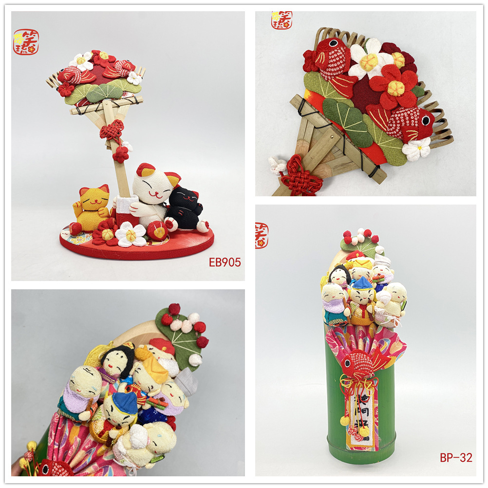 七福神竹筒置物BP-32/eb905日本布芸招き猫ウェディングプレゼント