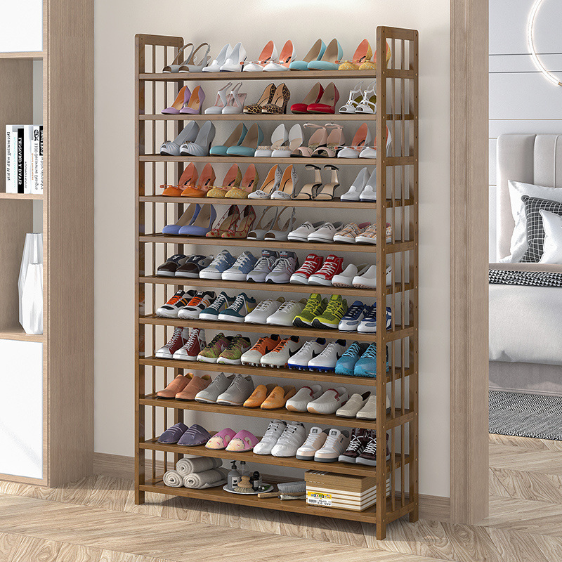 簡易靴棚家庭用玄関収納高層大容量多層実木シンプル現代靴棚置物竹棚