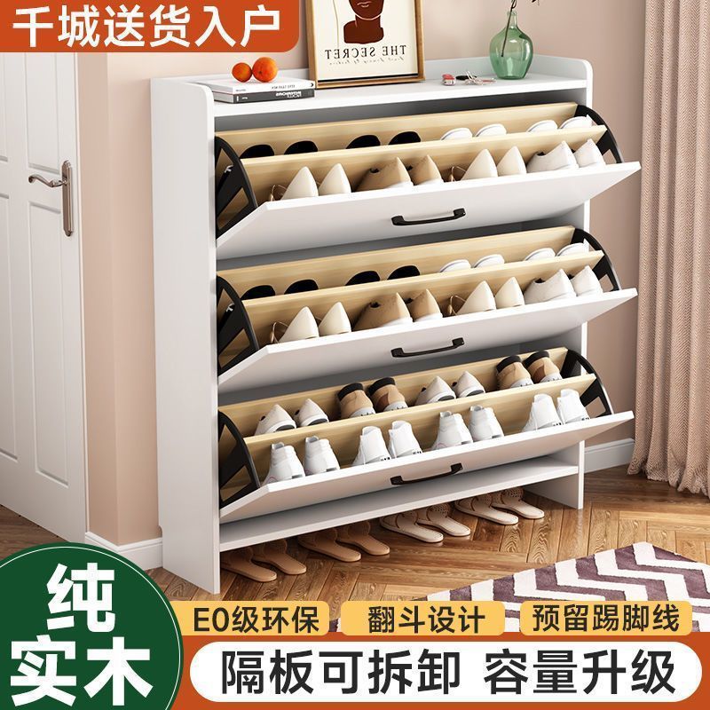 転倒超薄靴棚全実木防塵大容量ネット赤小戸型折り畳み式入口超狭靴棚