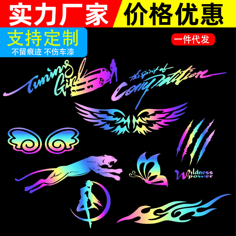 カラフルなレーザーカーのステッカーは、スクラッチ電気自動車のステッカーの車体ステッカーを隠します。