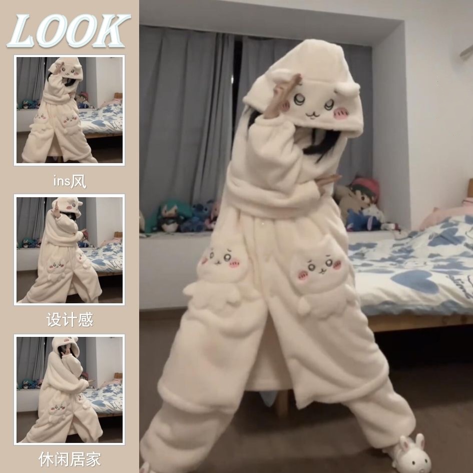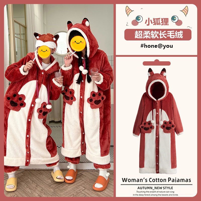 2024年の新型ジイカは冬の家で寝ている服を厚くして、かわいいサンゴの毛を厚くしてパジャマの女性を着ることができる